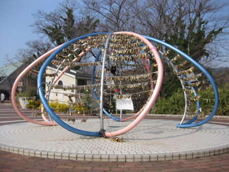 現在は↑のようなオブジェが設けられ、そこに鍵をかけるようになったようです。